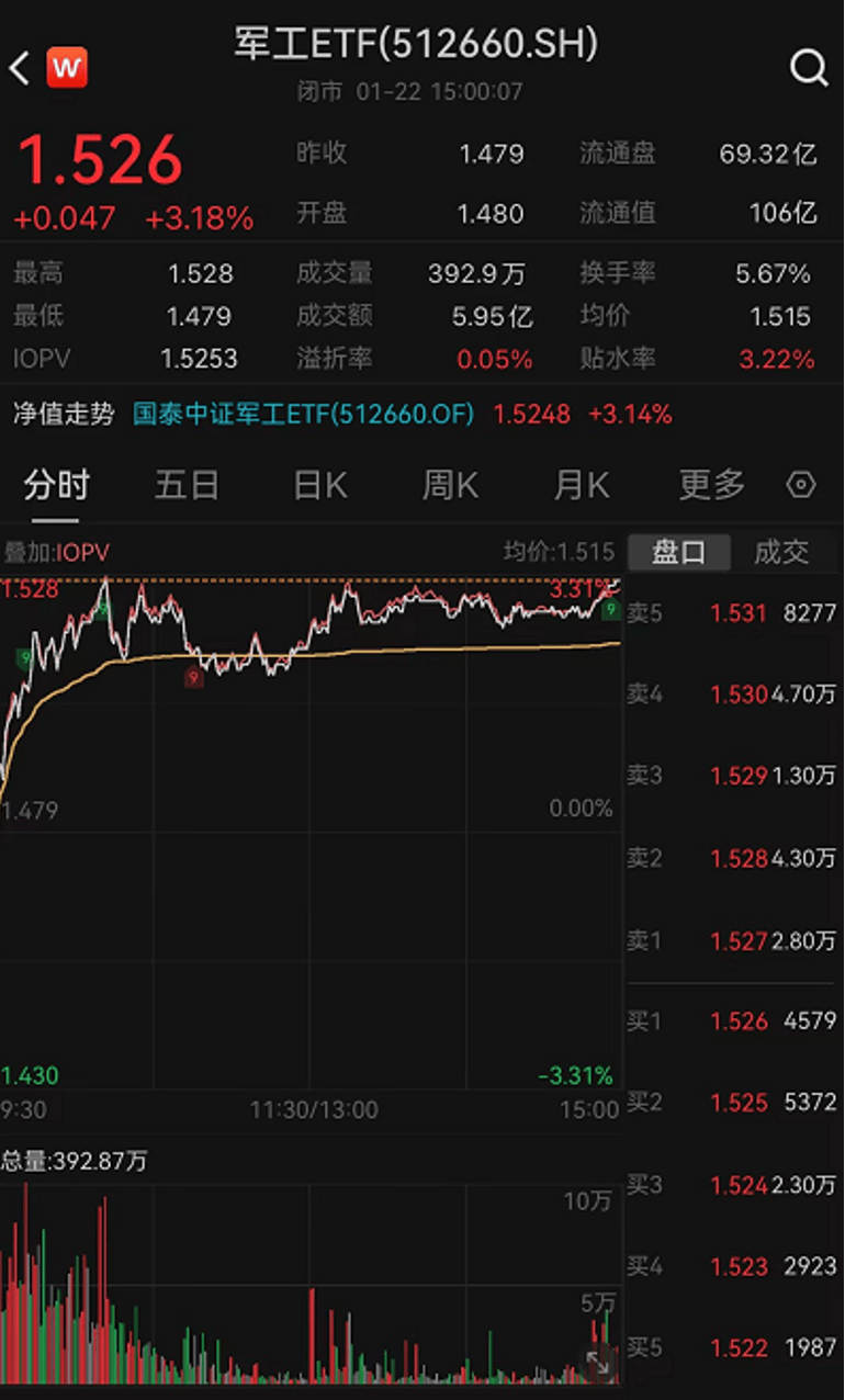 2026-01-23南宫28官网,南宫28官方网站,南宫28APP下载1月22日,军工ETF回暖,开盘之后震荡走高,下午横盘,收涨3.18%。