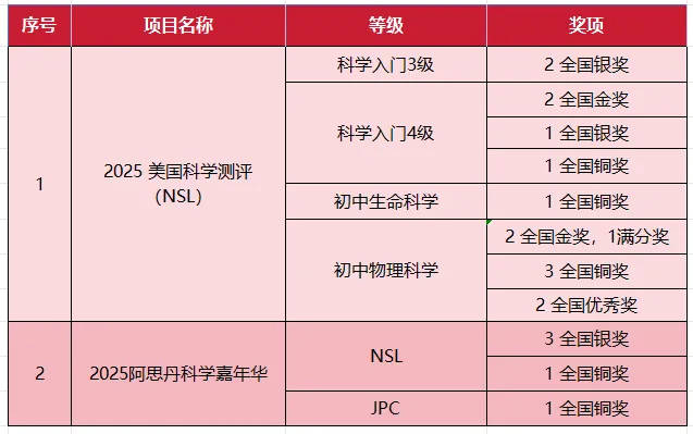 阿思丹科学嘉年华:NSL竞赛分为不同级别:科学入门级(1-4级)侧重基础实验与观察,初高中学科专项(物理、化学、生命科学等)则需综合运用STEM跨学科知识解决现实生活中的问题。NSL奖项设置满分奖、金奖、银奖、铜奖、优秀奖。在NSL中取得突出成绩的学生将晋级全国科学全明星嘉年华。