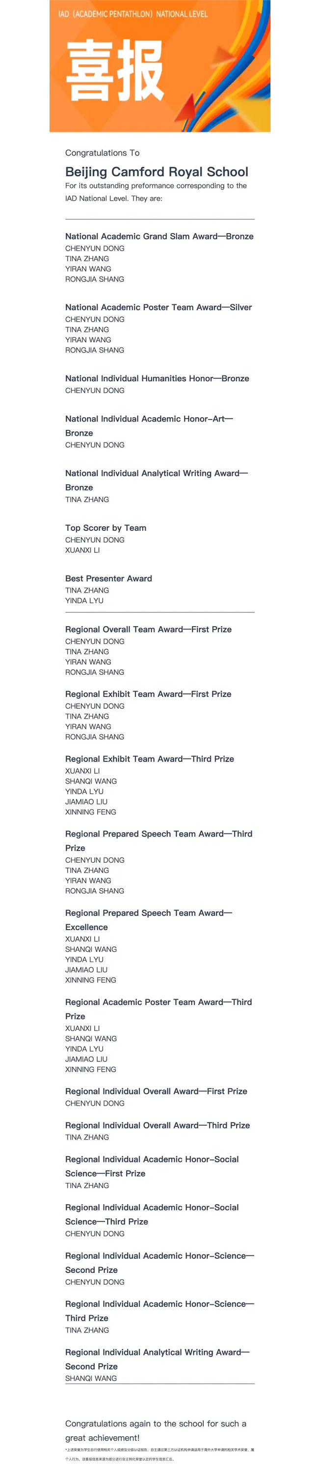 我们期待着,这些在竞赛中不惧挑战,过关斩将的学生们,在更广阔的学术舞台上继续追逐热爱,攻坚克难、勇攀高峰!(文字:雅洁 图片:宝利、初中部提供)